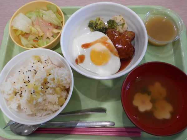🥚 目玉焼きとウサギの形ハンバーグの盛り合わせ