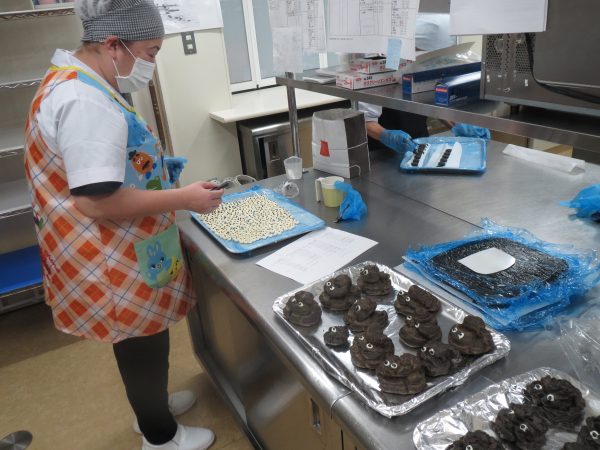 前日から準備で大忙しでしたが、黒いシュークリーム・かぼちゃムース・黒いロールケーキ・牛乳プリンの4種類のデザートを用意。