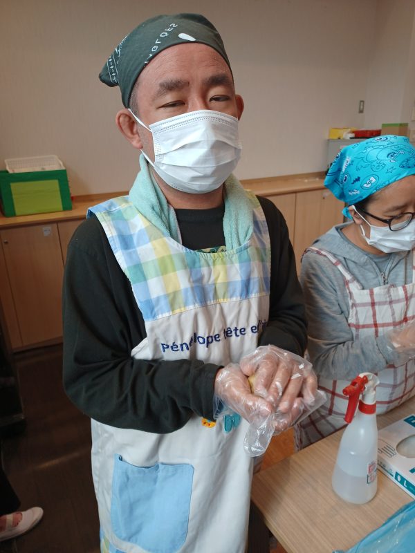 さて今回のおやつレクはどうでしょう??やる気満々のご利用者と作っていきます。