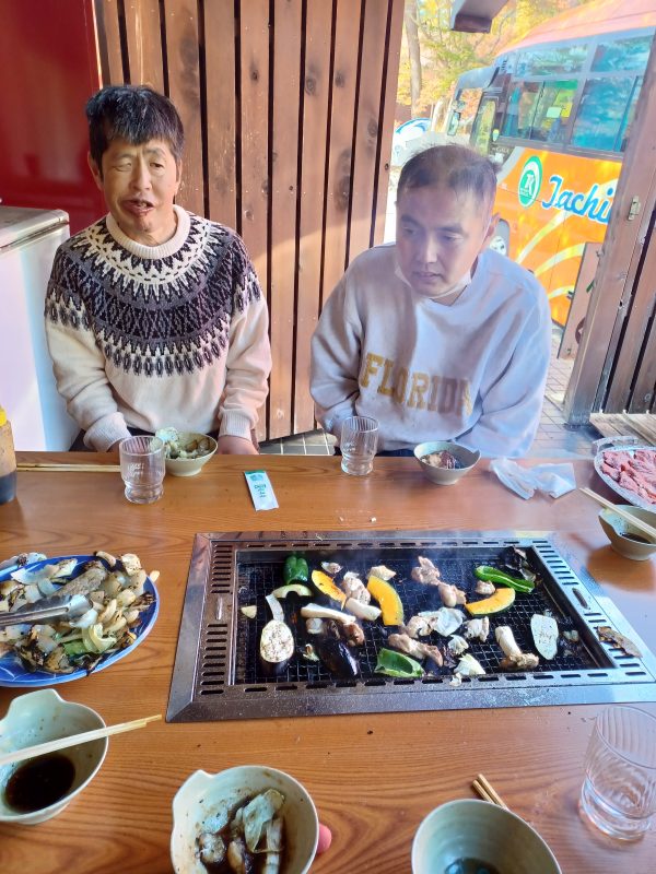 焼いている途中、煙に涙しながら新鮮な地元野菜とお肉(焼き加減に注意して)をいただいてきました。