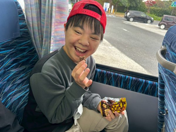 バスの中でもおやつを食べたりDVDを観たりしてにこにこでした♡