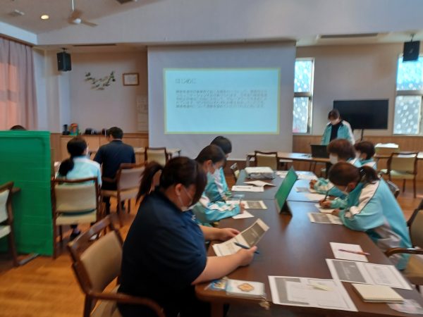 今回の研修に参加できなかった職員は、施設長、課長、主任が講師となり