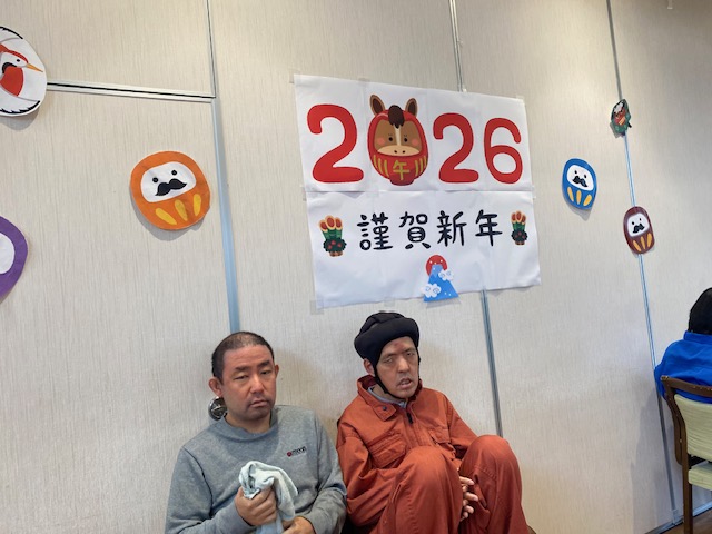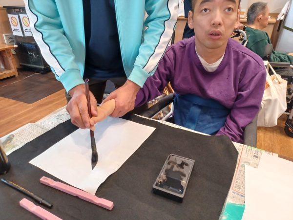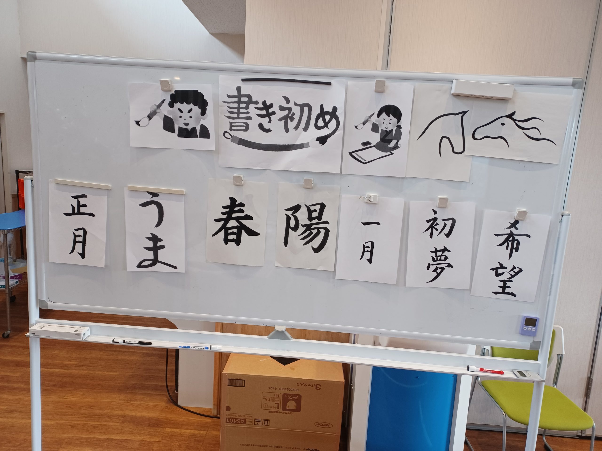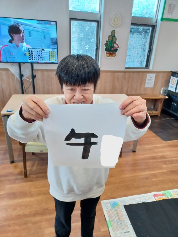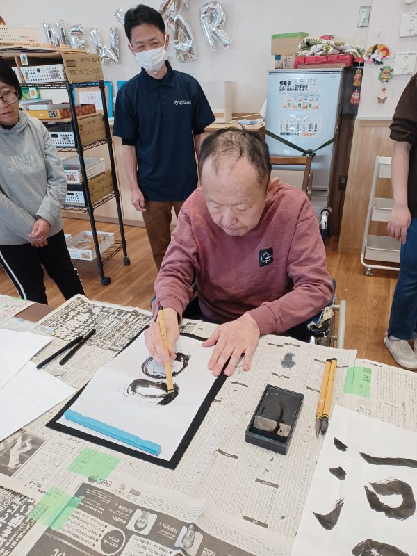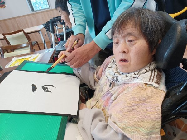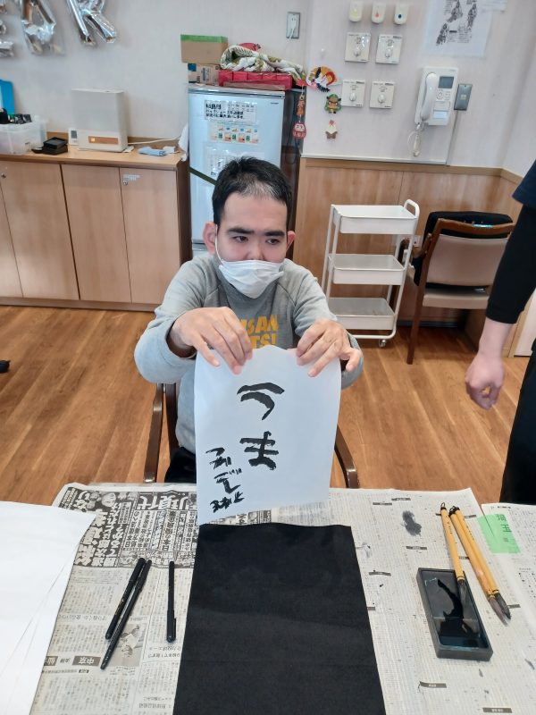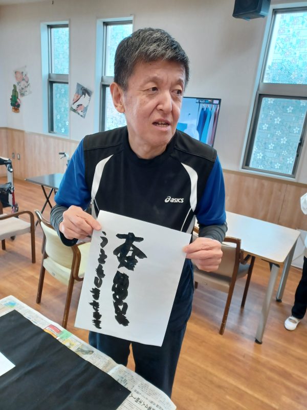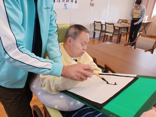 お正月を春陽の里で過ごされている皆さんで書き初めを行いました。