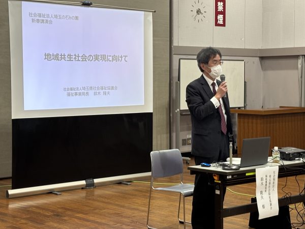 第2部では社会福祉法人埼玉県社会福祉協議会 鈴木様をお招きし、「共生社会に向けて、社会福祉法人の役割とは」について講演していただきました。