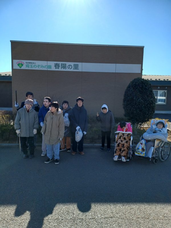 地域貢献活動として、普段施設外散歩で利用している道のゴミ拾いを行いました!