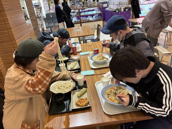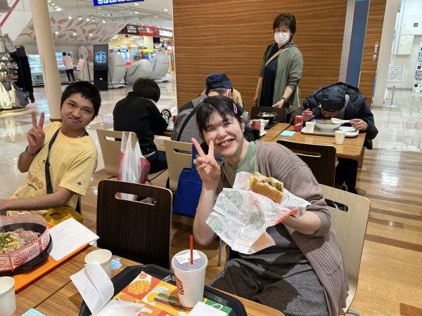 たくさんのお店の中から好きな物を注文して食べました。たくさん歩いた後の食事は美味しさもひとしおのようで、満足そうな様子がうかがえました😊