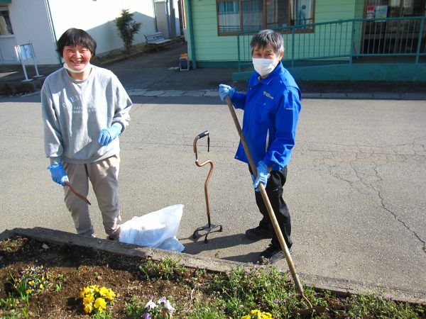 気候も暖かくなり、過ごしやすい日々も増えてきております。風はまだまだございますが、花壇のお花も順調に育っております。雑草も出てきましたので、生活介護のご利用者と一緒に草刈りを行いました。